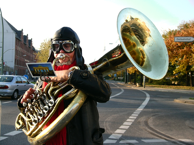 hier sind einige Instrumente meiner Instrumentensammlung abgebildet. Unten sieht man mich als Roter Baron mit meinem Helikon.